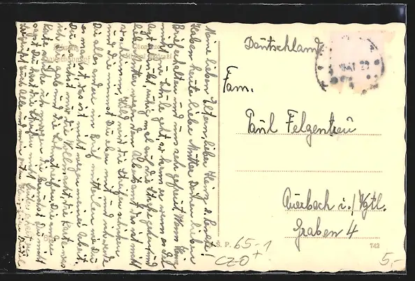 alte Ansichtskarte, gelaufen, rückseitig Klebe- und Papierreste, guter Zustand