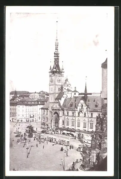 AK Olmütz / Olomouc, Radnice, Busse vorm Rathaus