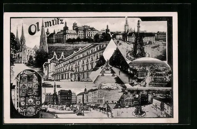 AK Olmütz, Ortsansicht aus der Vogelschau, Kirche, Strassenpartie