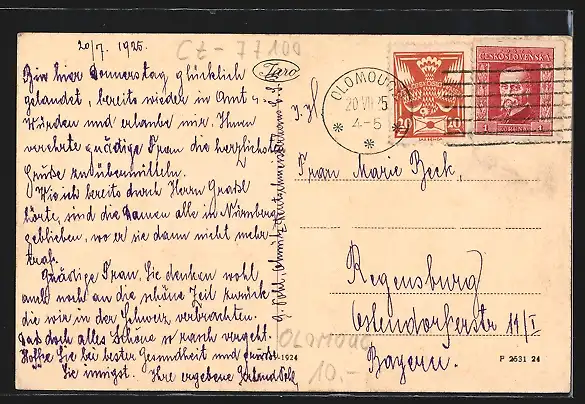 alte Ansichtskarte, gelaufen 1925, Oberflächenschaden re. oben, guter Zustand