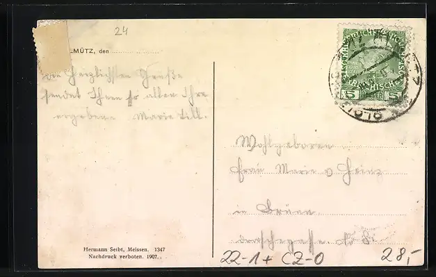 alte Ansichtskarte, gelaufen, rückseitig Klebe- und Papierreste, guter Zustand