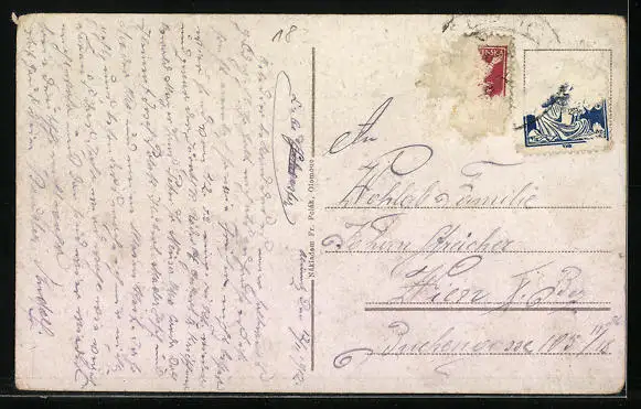 alte Ansichtskarte, gelaufen 1912, Briefmarke entfernt, Eckknick oben rechts, guter Zustand