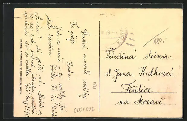 alte Ansichtskarte, gelaufen 1918, Briefmarke entfernt, Stempelspur, guter Zustand