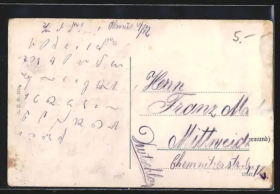 alte Ansichtskarte, gelaufen, Eckknick re. oben, rückseitig Klebe- und Papierreste, guter Zustand