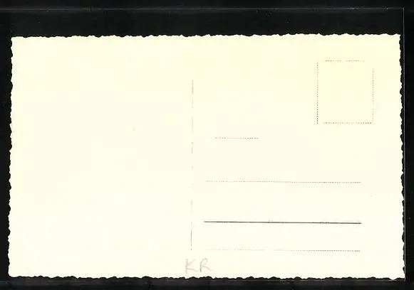 Personenbezogene Daten auf der Rückseite der Karte wurden durch blauen Textmarker unkenntlich gemacht. Die blauen Stellen sind auf die Vorderseite durchgeweicht und wirken sich negativ auf das Postkartenfoto aus