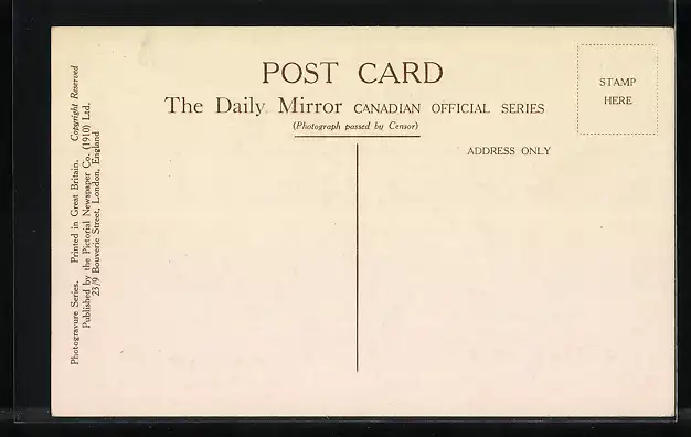 Personenbezogene Daten auf der Rückseite der Karte wurden durch blauen Textmarker unkenntlich gemacht. Die blauen Stellen sind auf die Vorderseite durchgeweicht und wirken sich negativ auf das Postkartenfoto aus