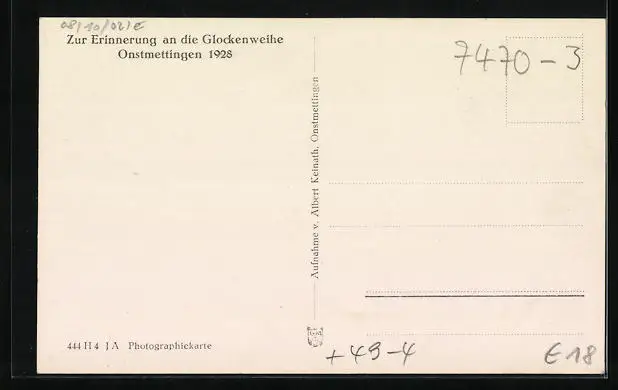 AK Onstmettingen, Zur Erinnerung an die Glockenweihe 1928