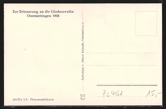 AK Onstmettingen, Zur Erinnerung an die Glockenweihe 1928