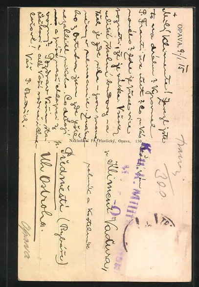 alte Ansichtskarte, gelaufen 1915, Briefmarke entfernt, rückseitig Oberflächenschaden, Eckknick re. oben, Stempelspur