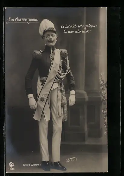 AK Operette Ein Walzertraum, Schauspieler Arthur Guttmann in Uniform mit Monokel