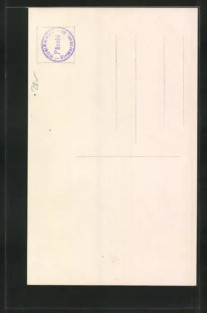 Personenbezogene Daten auf der Rückseite der Karte wurden durch blauen Textmarker unkenntlich gemacht. Die blauen Stellen sind auf die Vorderseite durchgeweicht und wirken sich negativ auf das Postkartenfoto aus