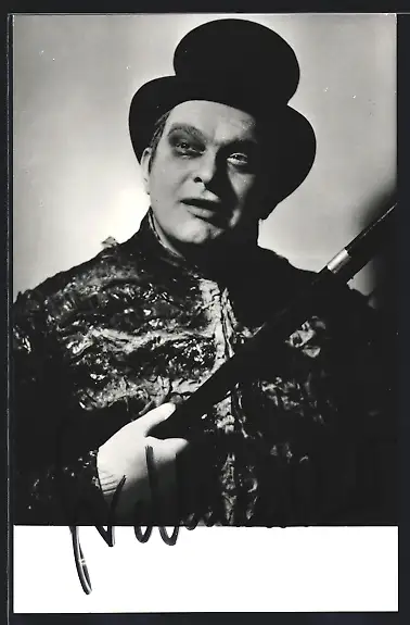 AK Opernsänger Gerd Nienstedt im Kostüm mit Zylinder, mit original Autograph