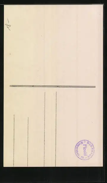 Personenbezogene Daten auf der Rückseite der Karte wurden durch blauen Textmarker unkenntlich gemacht. Die blauen Stellen sind auf die Vorderseite durchgeweicht und wirken sich negativ auf das Postkartenfoto aus