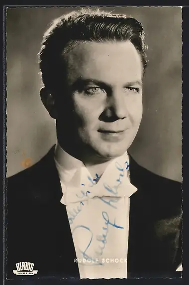 AK Opernsänger Rudolf Schock im Frack, mit original Autograph