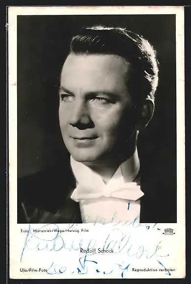 AK Opernsänger Rudolf Schock mit weisser Fliege, mit original Autograph
