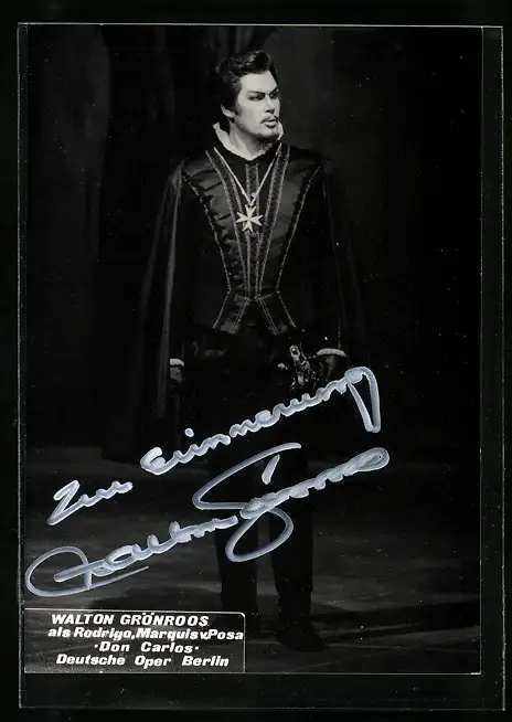AK Opernsänger Walter Grönroos als Rodrigo in Don Carlos, mit original Autograph