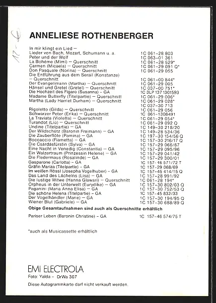 AK Opernsängerin Anneliese Rothenberger, mit original Autograph