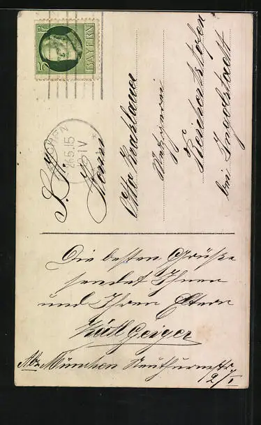 alte Ansichtskarte, gelaufen 1915, Bugspur oben mittig, guter Zustand