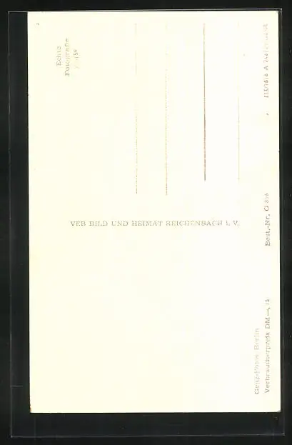 Personenbezogene Daten auf der Rückseite der Karte wurden durch blauen Textmarker unkenntlich gemacht. Die blauen Stellen sind auf die Vorderseite durchgeweicht und wirken sich negativ auf das Postkartenfoto aus