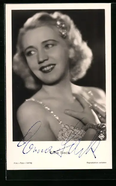 AK Opernsängerin Erna Sack lachend im Halbprofil, Autograph