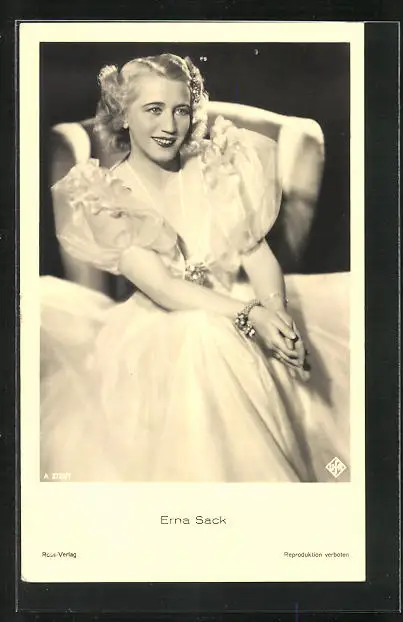 AK Opernsängerin Erna Sack sitzend im pompösen Kleid