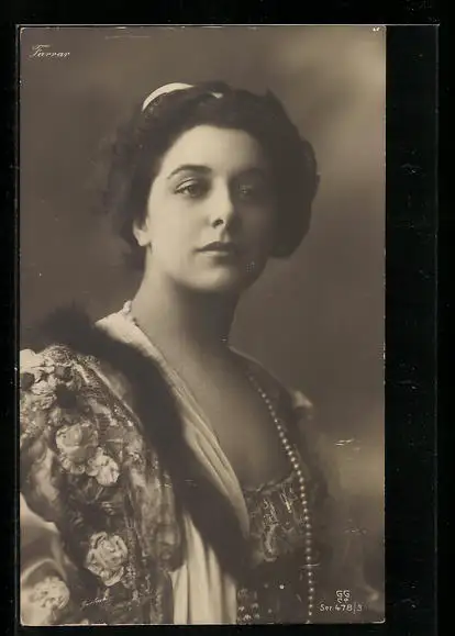 AK Opernsängerin Farrar mit Perlenkette