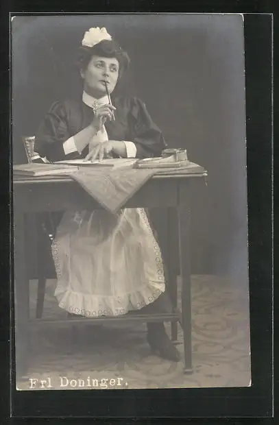 AK Opernsängerin Frl. Doninger in Dienstmädchenkleidung