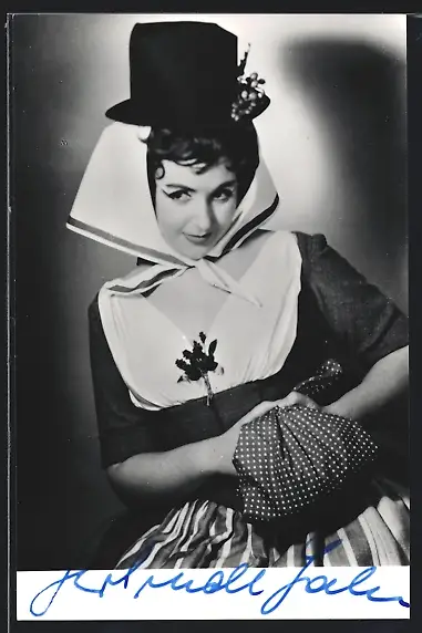 AK Opernsängerin Gertrude Jahn im Kleid mit schwarzem Hut, mit original Autograph