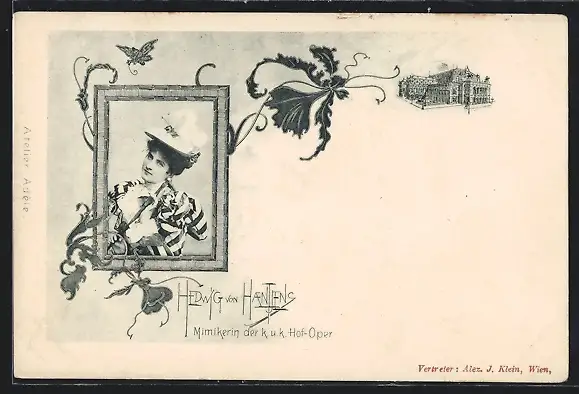 AK Opernsängerin Hedwig von Hantjens im gestreiften Kleid