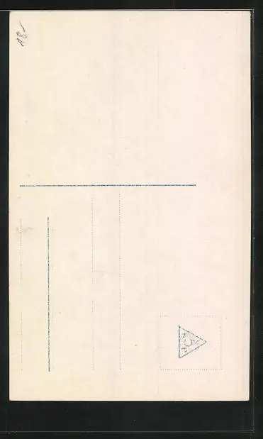 Personenbezogene Daten auf der Rückseite der Karte wurden durch blauen Textmarker unkenntlich gemacht. Die blauen Stellen sind auf die Vorderseite durchgeweicht und wirken sich negativ auf das Postkartenfoto aus