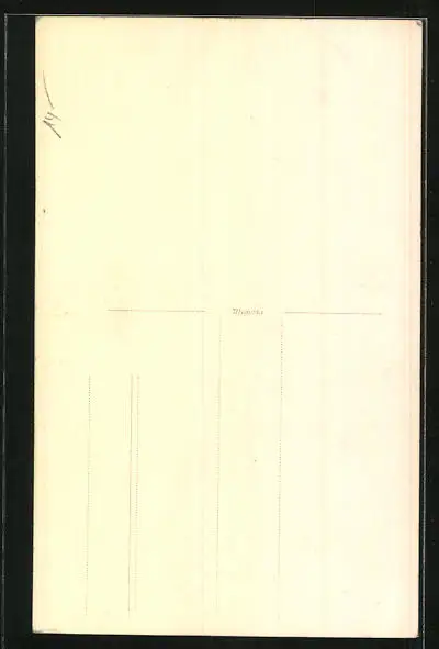 Personenbezogene Daten auf der Rückseite der Karte wurden durch blauen Textmarker unkenntlich gemacht. Die blauen Stellen sind auf die Vorderseite durchgeweicht und wirken sich negativ auf das Postkartenfoto aus