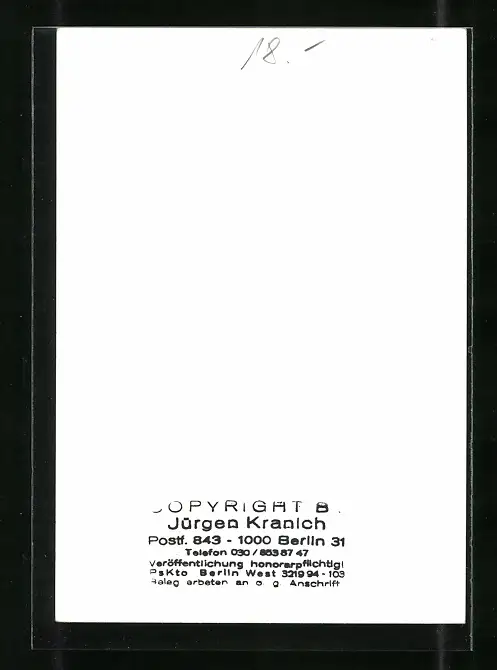 Personenbezogene Daten auf der Rückseite der Karte wurden durch blauen Textmarker unkenntlich gemacht. Die blauen Stellen sind auf die Vorderseite durchgeweicht und wirken sich negativ auf das Postkartenfoto aus