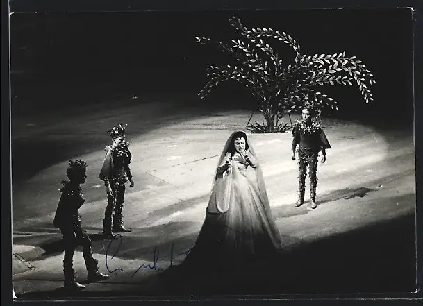 AK Opernsängerin Lieselotte Fölser mit drei Knaben in einer Szene, mit original Autograph