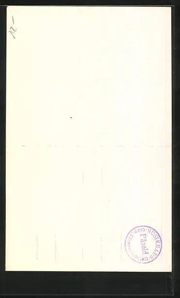 Personenbezogene Daten auf der Rückseite der Karte wurden durch blauen Textmarker unkenntlich gemacht. Die blauen Stellen sind auf die Vorderseite durchgeweicht und wirken sich negativ auf das Postkartenfoto aus