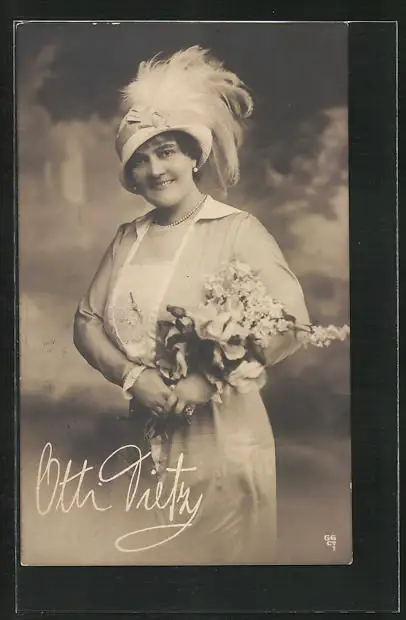 AK Opernsängerin Otti Vietz mit Blumenstrauss