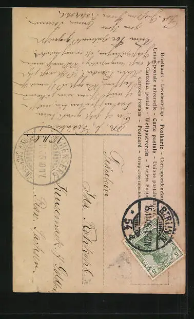 alte Ansichtskarte, gelaufen 1905, Einriss unten, guter Zustand