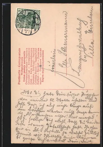 alte Ansichtskarte, gelaufen 1906, Eckknick unten links, guter Zustand