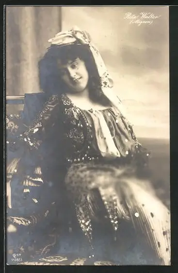 AK Opernsängerin Reta Walter im bestickten Kleid