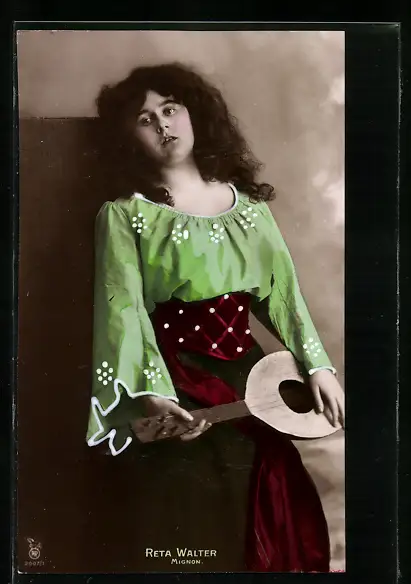 AK Opernsängerin Reta Walter im grünen Kleid mit Laute