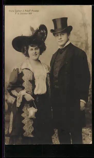AK Opernsängerin Reta Walter mit Adolf Hesse bei einem Spaziergang