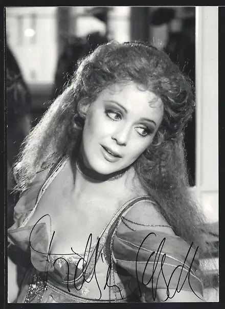 AK Opernsängerin Trudeliese Schmidt im geschmückten Kleid, mit original Autograph