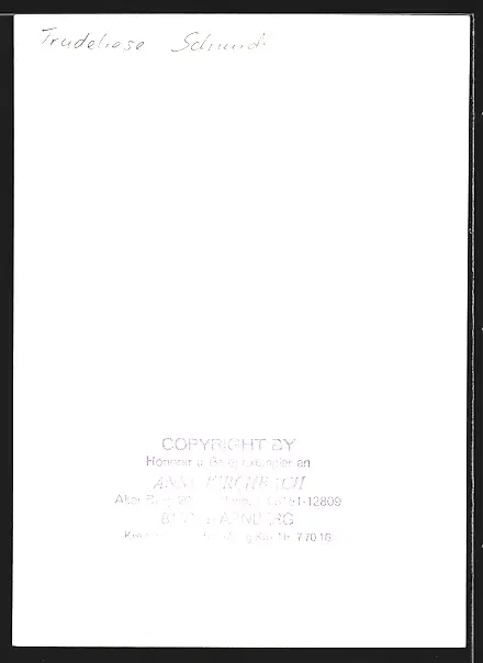 Personenbezogene Daten auf der Rückseite der Karte wurden durch blauen Textmarker unkenntlich gemacht. Die blauen Stellen sind auf die Vorderseite durchgeweicht und wirken sich negativ auf das Postkartenfoto aus
