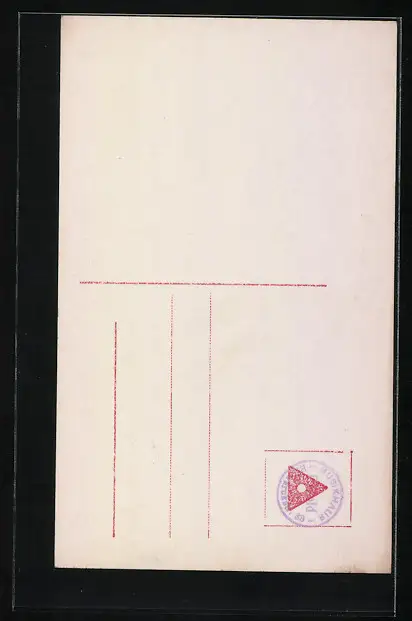 Personenbezogene Daten auf der Rückseite der Karte wurden durch blauen Textmarker unkenntlich gemacht. Die blauen Stellen sind auf die Vorderseite durchgeweicht und wirken sich negativ auf das Postkartenfoto aus