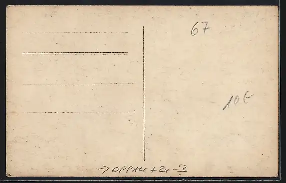 Personenbezogene Daten auf der Rückseite der Karte wurden durch blauen Textmarker unkenntlich gemacht. Die blauen Stellen sind auf die Vorderseite durchgeweicht und wirken sich negativ auf das Postkartenfoto aus