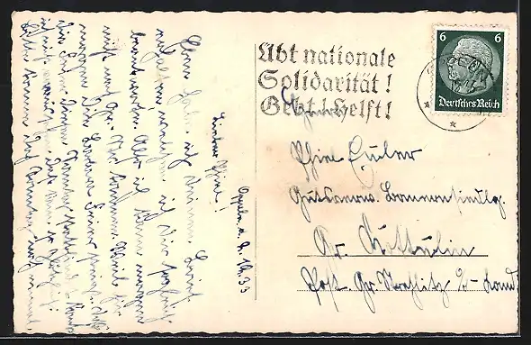alte Ansichtskarte, gelaufen 1933, Eckknick re. oben, guter Zustand