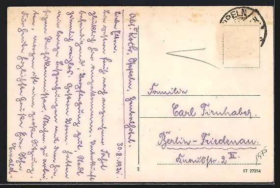 alte Ansichtskarte, gelaufen, Briefmarke entfernt, Stempelspur, guter Zustand