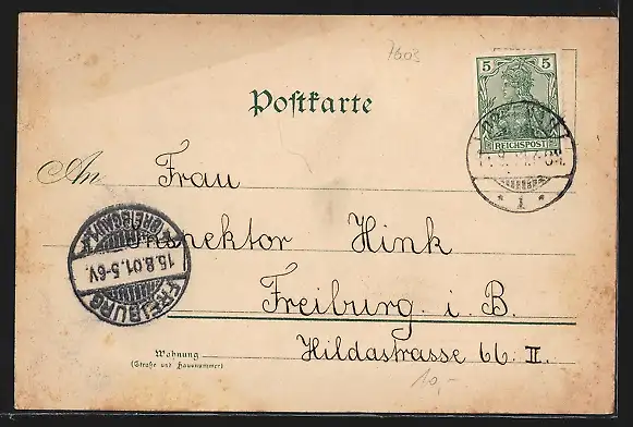 alte Ansichtskarte, gelaufen 1901, guter Zustand
