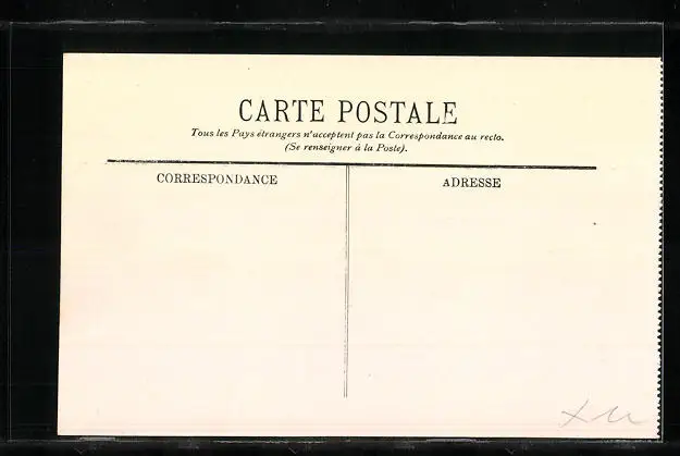 Personenbezogene Daten auf der Rückseite der Karte wurden durch blauen Textmarker unkenntlich gemacht. Die blauen Stellen sind auf die Vorderseite durchgeweicht und wirken sich negativ auf das Postkartenfoto aus