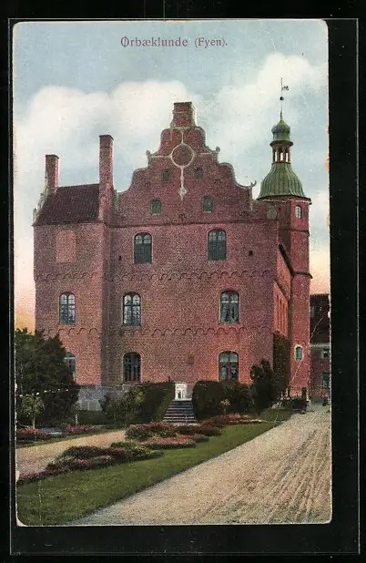 AK Orbaeklunde /Fyen, Blick auf ein Backsteinhaus