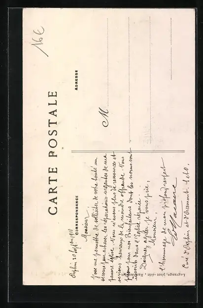 Personenbezogene Daten auf der Rückseite der Karte wurden durch blauen Textmarker unkenntlich gemacht. Die blauen Stellen sind auf die Vorderseite durchgeweicht und wirken sich negativ auf das Postkartenfoto aus